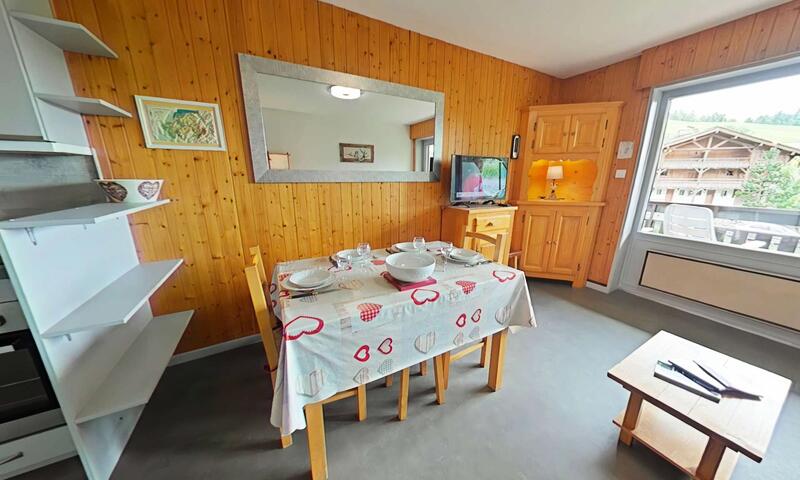 Cet appartement de vacances situé en rez de jardin (1 étage à descendre), comprend un séjour avec canapé convertible  2 personnes , un balcon sud avec vue sur les pistes, un coin cuisine équipé d'un lave-vaisselle, 2 lits superposés  de 1 personne , salle de bains avec un WC. Parking de la résidence emplacement non défini, casier à ski.