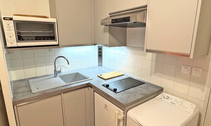 - Cuisine avec plaques de cuisson vitrocéramique 2 feux, réfrigérateur TOP avec compartiment congélation, four, four micro-ondes, lave-vaisselle, lave-linge, cafetière électrique, vaisselle et ustensiles de cuisine