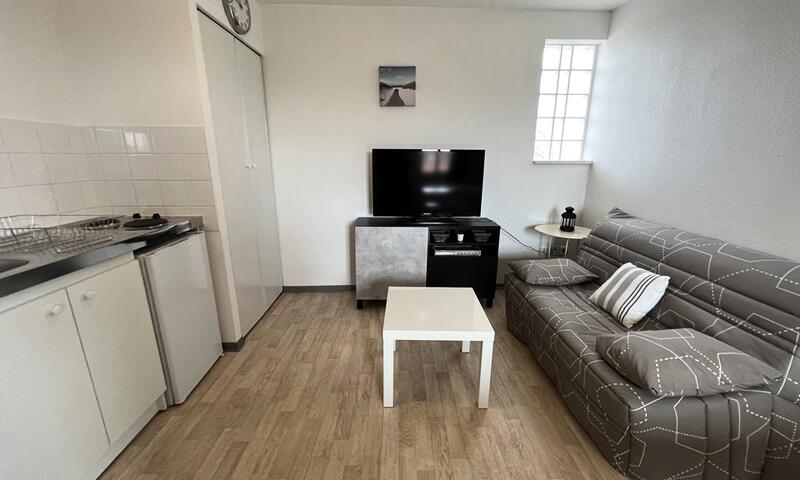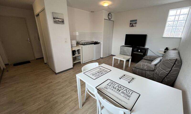 Joli appartement au 2ème étage avec ascenseur et place de parking se situant à 2mns à pied du centre ville. Il se compose d'une entrée, un coin cuisine équipée et ouvert sur un espace à vivre avec canapé/lit, une chambre avec 1 lit double en 140cm et rangements ainsi qu'un lit enfant, une salle d'eau/WC. La résidence est accessible aux personnes handicapées. Petits animaux uniquement acceptés. POINTS FORTS : CALME, CENTRE VILLE, PARKING. Caution à régler sur place. Chèques vacances acceptés.