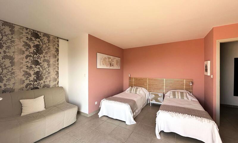 A l'étage : une troisième chambre avec terrasse vue mer, 2 lits simples (90*200) ainsi qu'1 convertible type Bz (140*200), une salle de douche, 1 WC indépendant, une quatrième chambre climatisée avec 1 lit double (160*200).