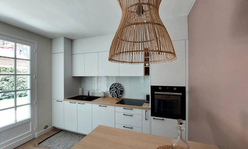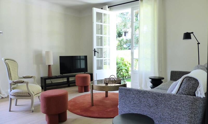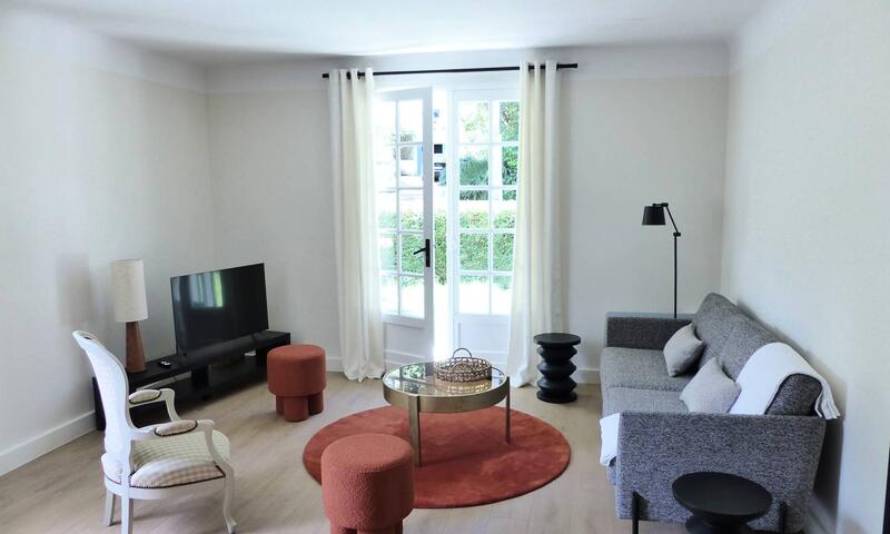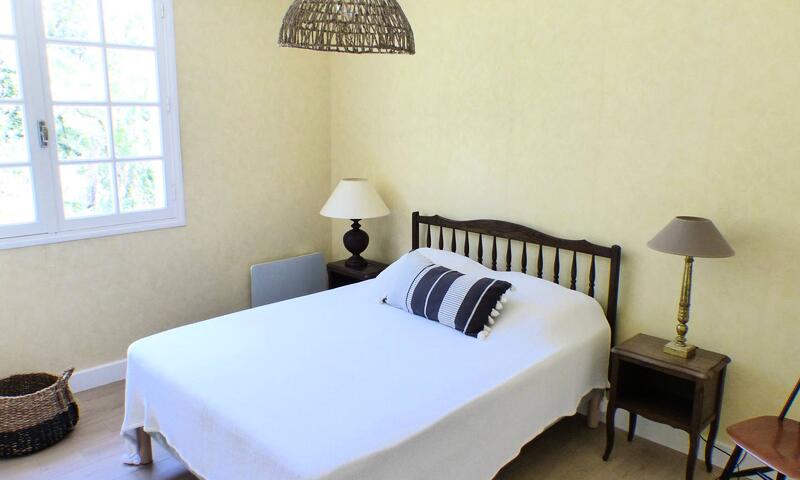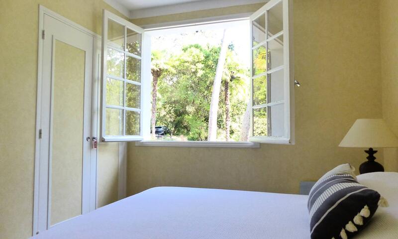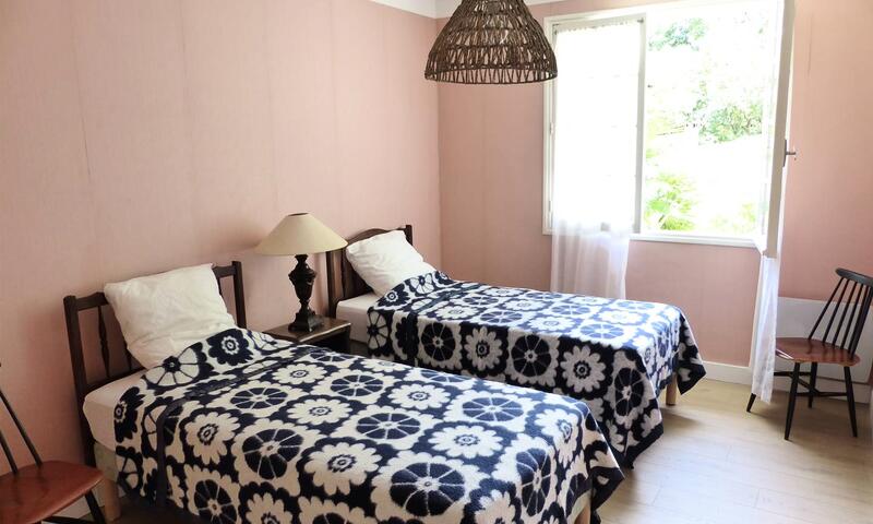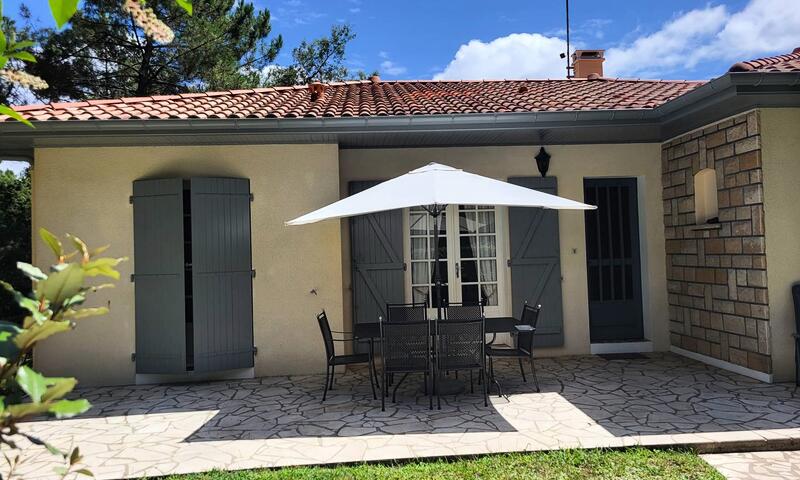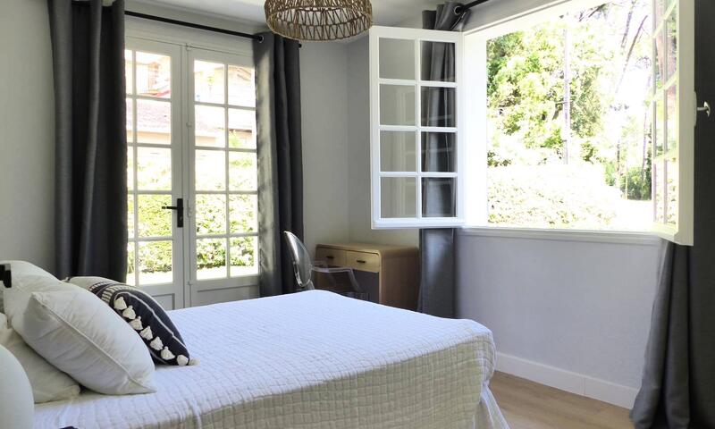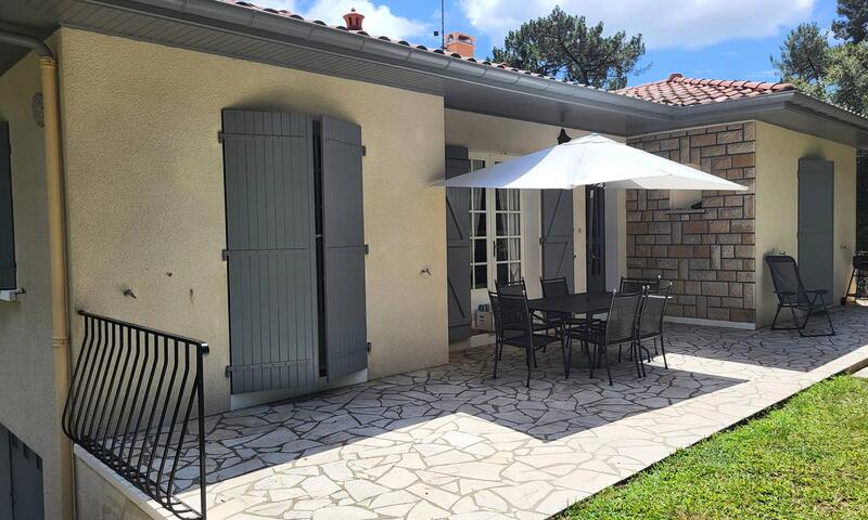 Idéale pour une famille, cette partie de villa spacieuse d'environ 85 m² est située dans un secteur calme et boisé, à proximité du lac marin et de la forêt. La rénovation a été réalisée avec goût et des matériaux de qualité. Chaque partie de la villa possède son entrée indépendante même si le jardin entre les deux appartements n'est pas clôturé. Hors saison le rez de jardin n'est pas loué.