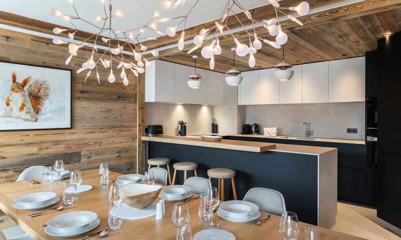 - Cuisine ouverte équipée : réfrigérateur/congélateur, four mixte, four micro-onde, lave-vaisselle, plaques induction, caves à vin, blender, bouilloire, service à fondue, Nespresso, grille-pain et robot KitchenAid