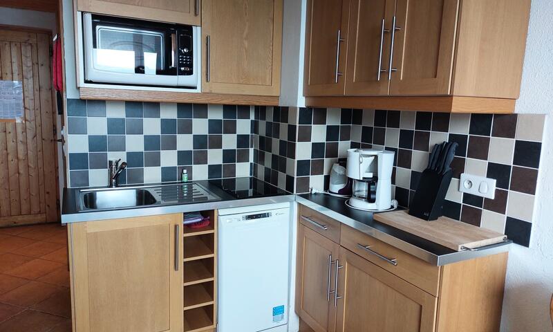Pour vos vacances au ski ou vos vacances d'été aux Arcs 1800, réservez ce 2 pièces qui bénéficie d'un balcon avec une exposition Nord-Est, vous offrant une vue sur la station et le Mont-Blanc.