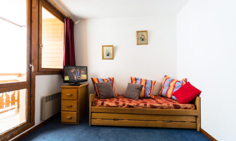 Séjour: télévision, banquette gigogne (convertible en deux lits simples côte à côte).