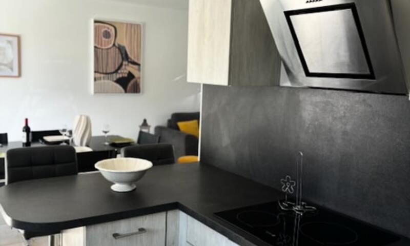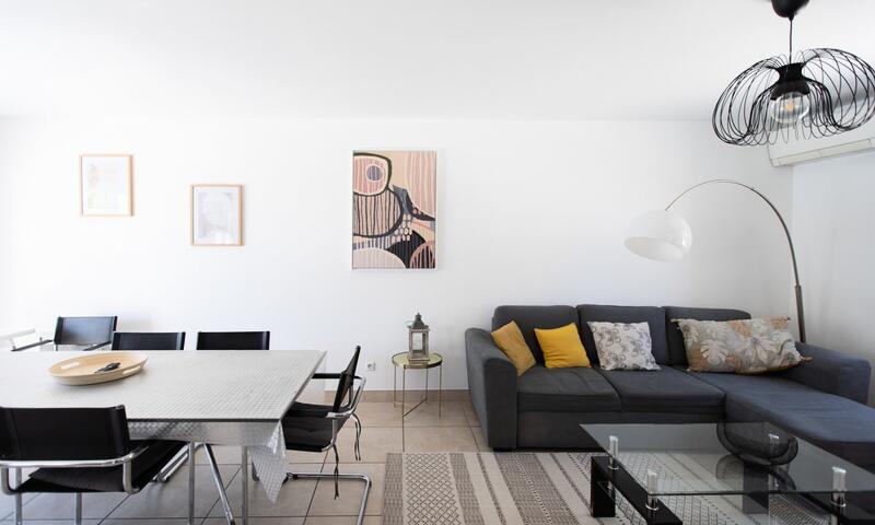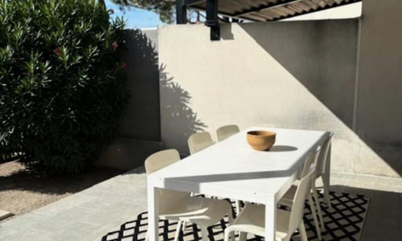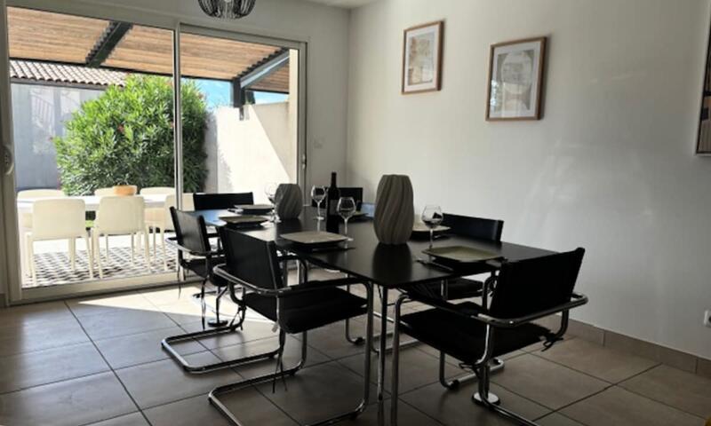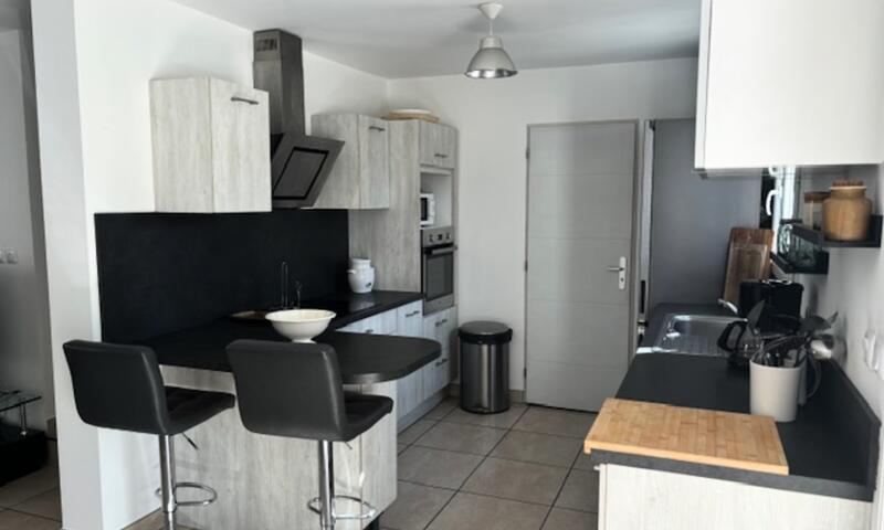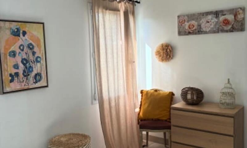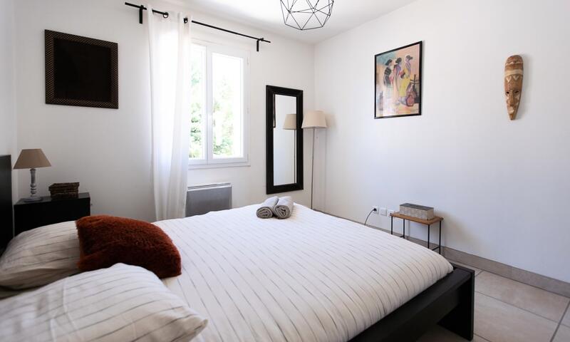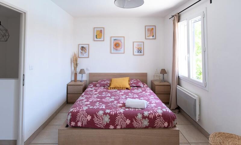 La maison est composée de 2 chambres avec lit double ainsi que d'un canapé convertible dans le séjour (qui est équipée d'une climatisation), pouvant accueillir 6 personnes.