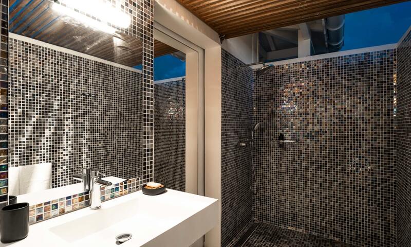 2 chambres meublées de lits en 160,  climatisées avec chacune sa salle d'eau privative ouverte sur le ciel des antilles.