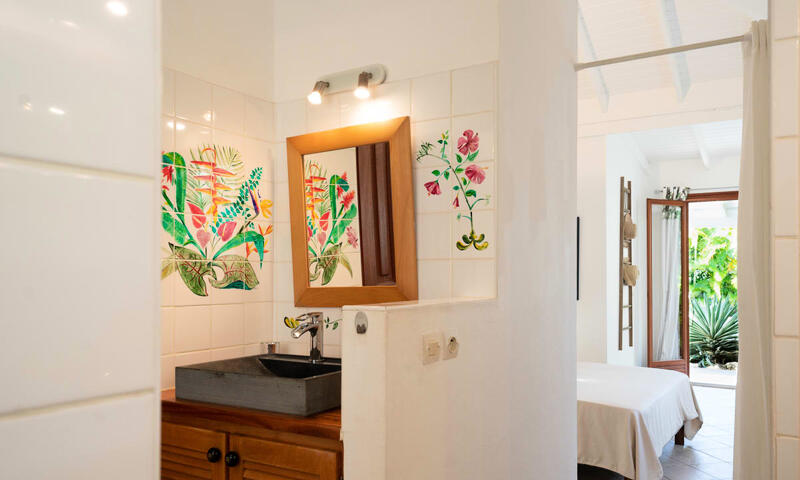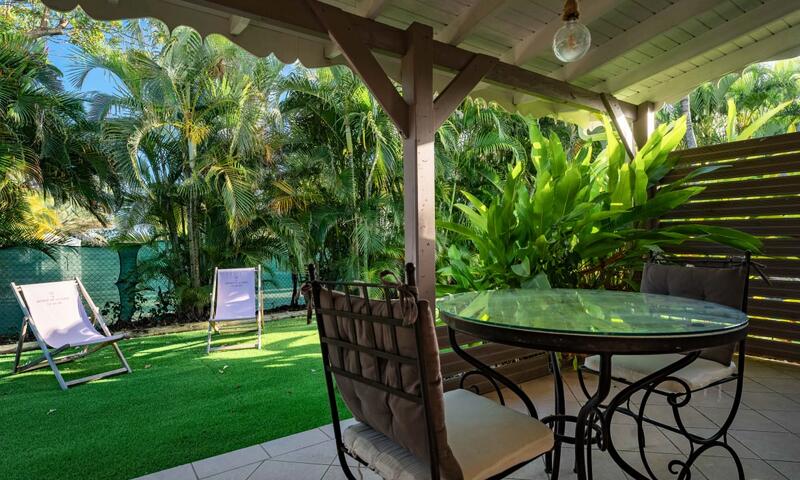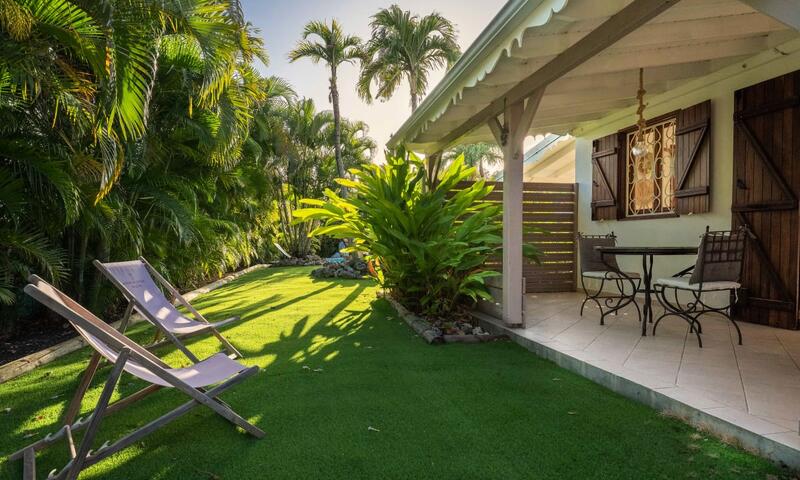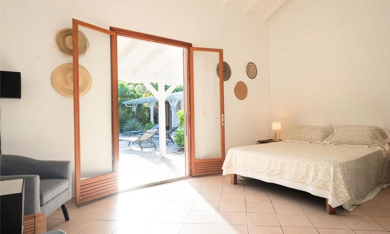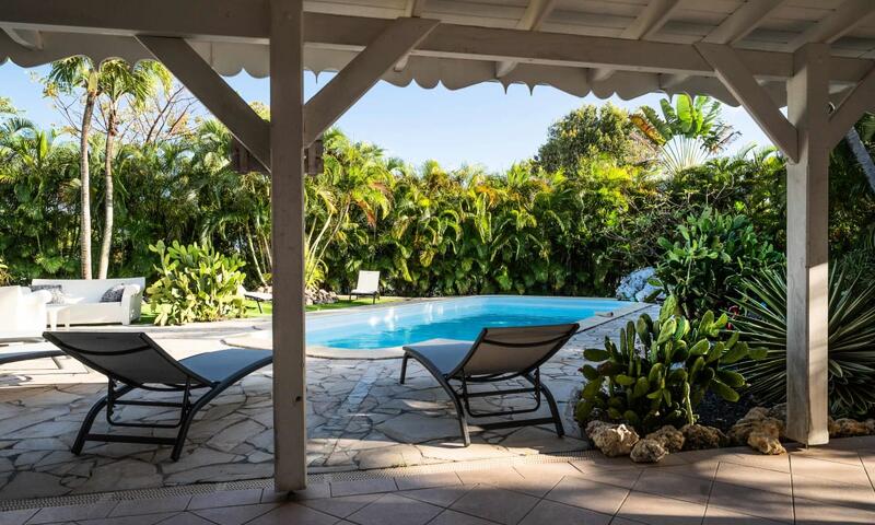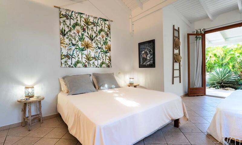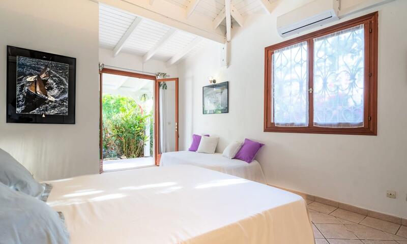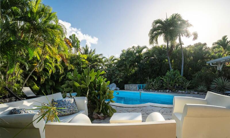 Intimiste à l'abri des regards, nichée au milieu d'un écrin de verdure en lotissement privé à moins de 3 km de toutes commodités et des plages, superbe villa avec piscine. Décoration mêlant douceur balnéaire et couleurs des caraibes.