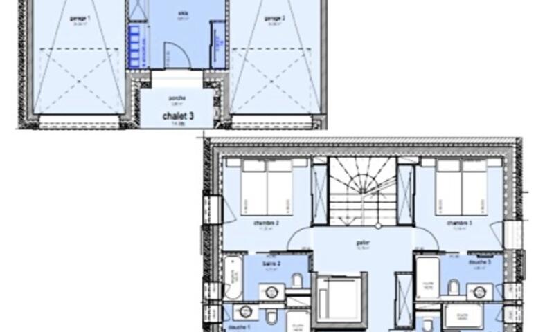 Au niveau -2, chambres n°3 et n°4 en suite avec leurs salles de douche et WC, avec chacune deux lits jumeaux (80*200),  placards et Télévision.