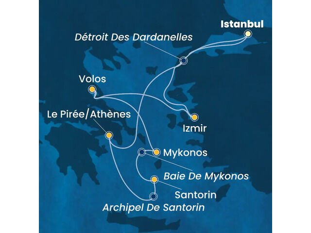Nos croisières à travers la Grèce peuvent aussi vous emmener en Turquie, en Italie, en France et même en Espagne, en fonction de leur durée. Voici les destinations les plus populaires en Grèce de l'avis des voyageurs.