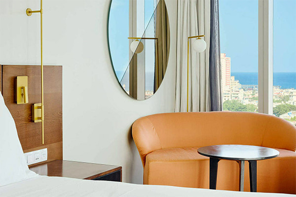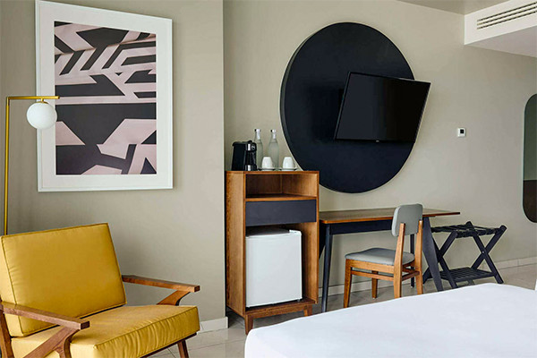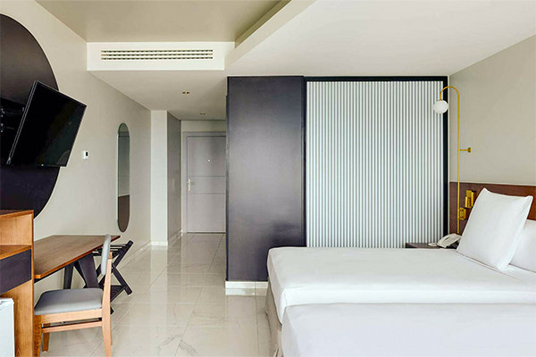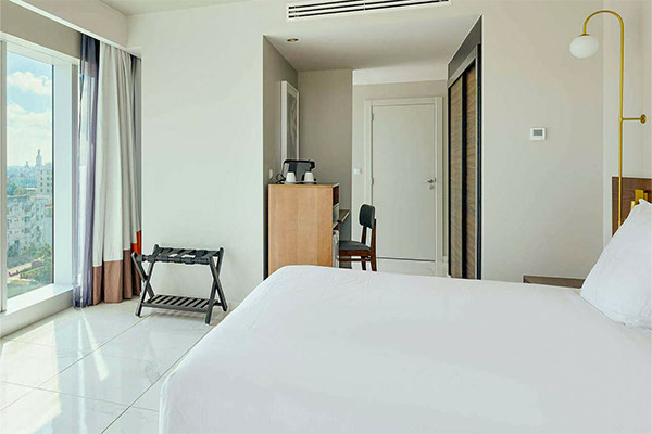 - Chambre double vue ville (34 m²). Capacité maximum : 2 adultes + 1 enfant.