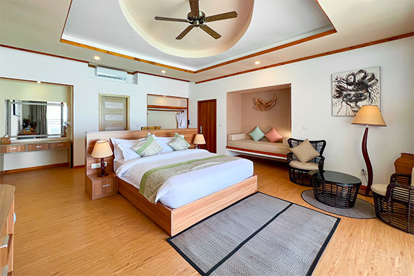 - Villa deluxe plage avec piscine privée (163 m²) : mêmes équipements, terrasse aménagée, piscine privée, vue jardin. Capacité maximum: 2 adultes + 2 enfants (+ lits d'appoint).