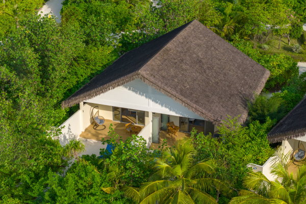 Le resort propose des villas spacieuses réparties entre plage et sur pilotis avec des espaces intérieurs-extérieurs soigneusement aménagés.